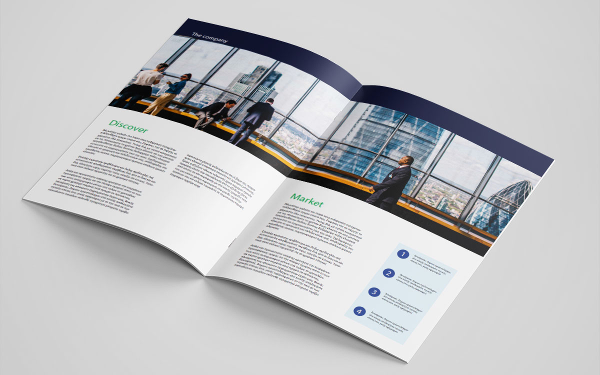 Έντυπο καρφίτσα με 8 περισσότερες σελίδες. Ενδείκνυται για company profiles, newsletters, περιοδικά, καταλόγους με προϊόντα, υπηρεσίες, τιμές, ενημερωτικό ή άλλο υλικό.