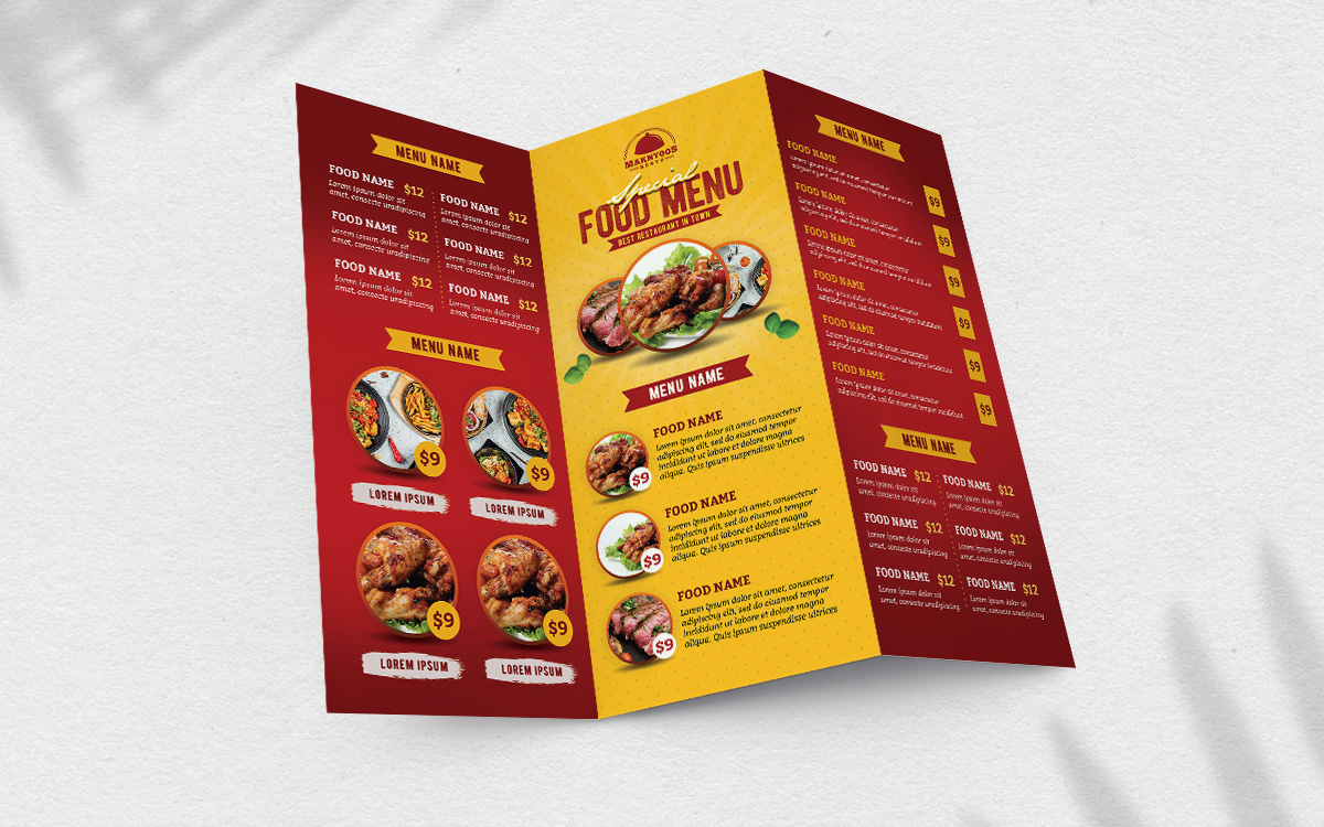 Κατάλογος εστιατορίου τρίπτυχος σε διάφορα είδη χαρτιών ή σε αδιάβροχα υλικά.