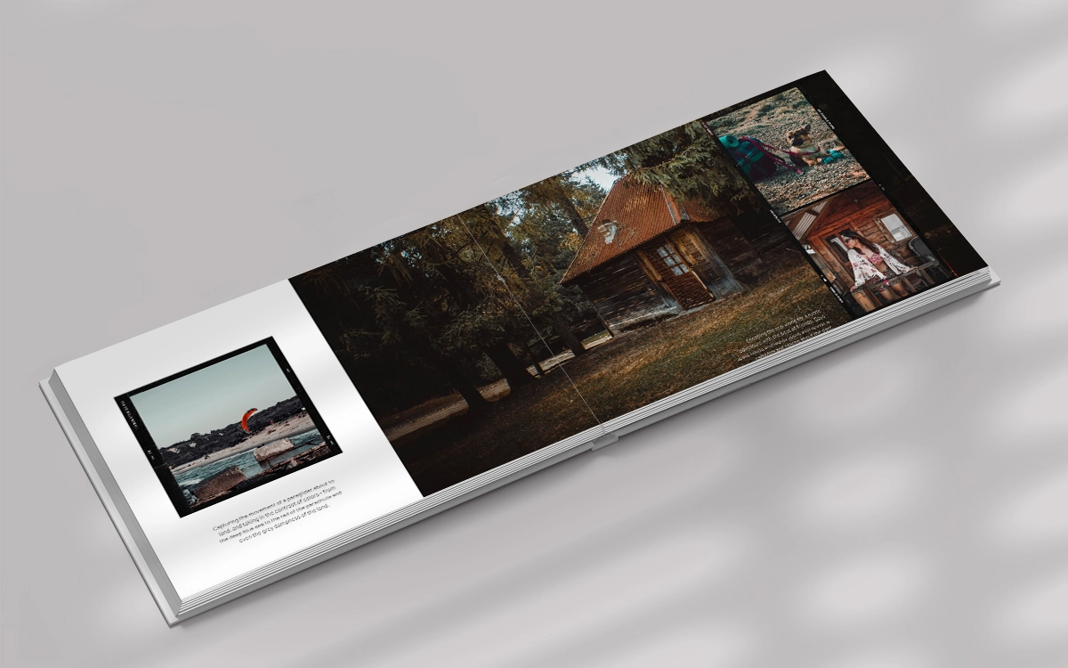 Πλάγιο photobook 20-60 σελ. με σκληρό εξώφυλλο και πλαστικοποιημένες σελίδες 600gr. που ανοίγουν διάπλατα.