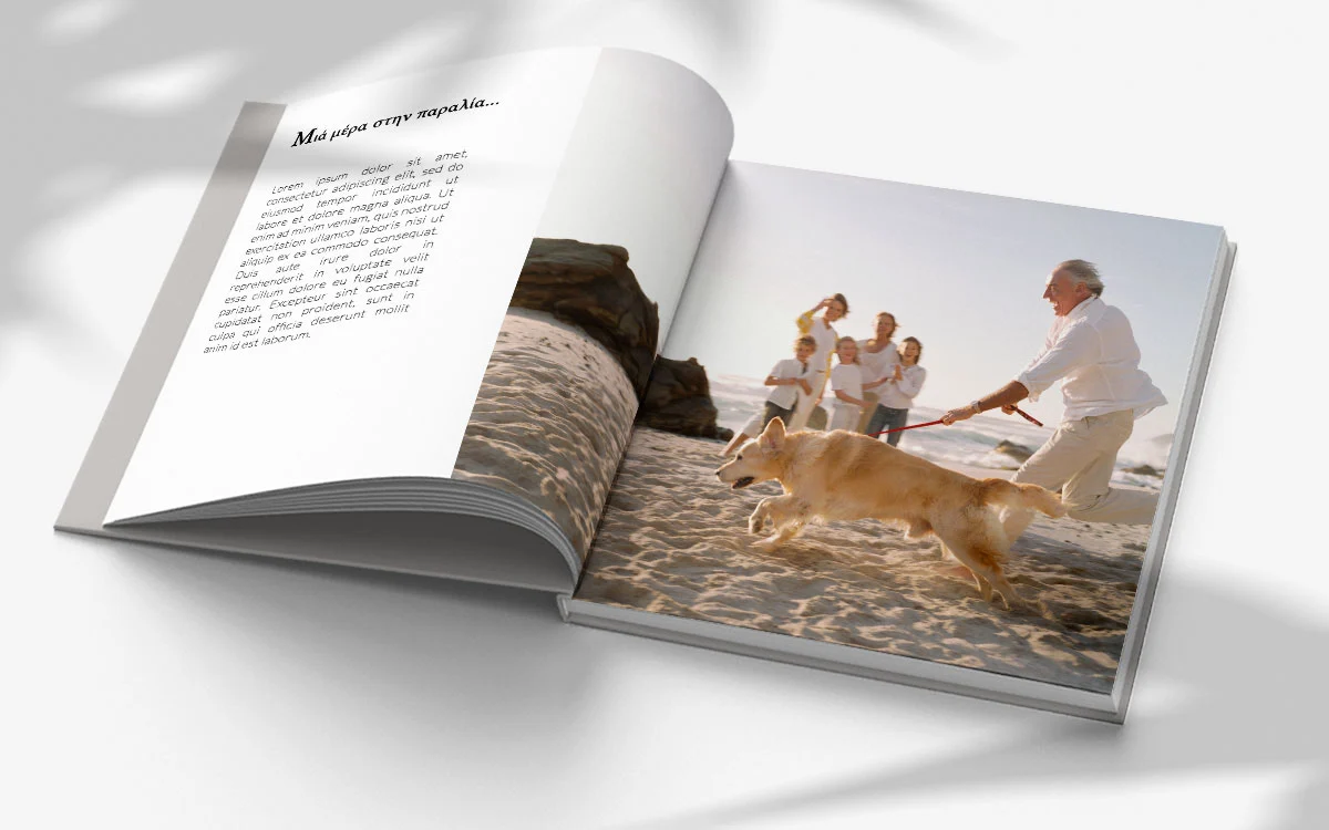 Τετράγωνο photobook 20-100 σελ. με πλαστικοποιημένο σκληρό εξώφυλλο και πλαστικοποιημένο ψηφιακό χαρτί 200γρ στο εσωτερικό.