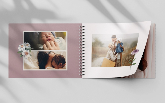 Πλάγιο photobook με βιβλιοδεσία σπιράλ, 20-100 σελίδες, πλαστικοποιημένο εξώφυλλο 300γρ και χαρτί 200γρ στις εσωτερικές σελίδες.