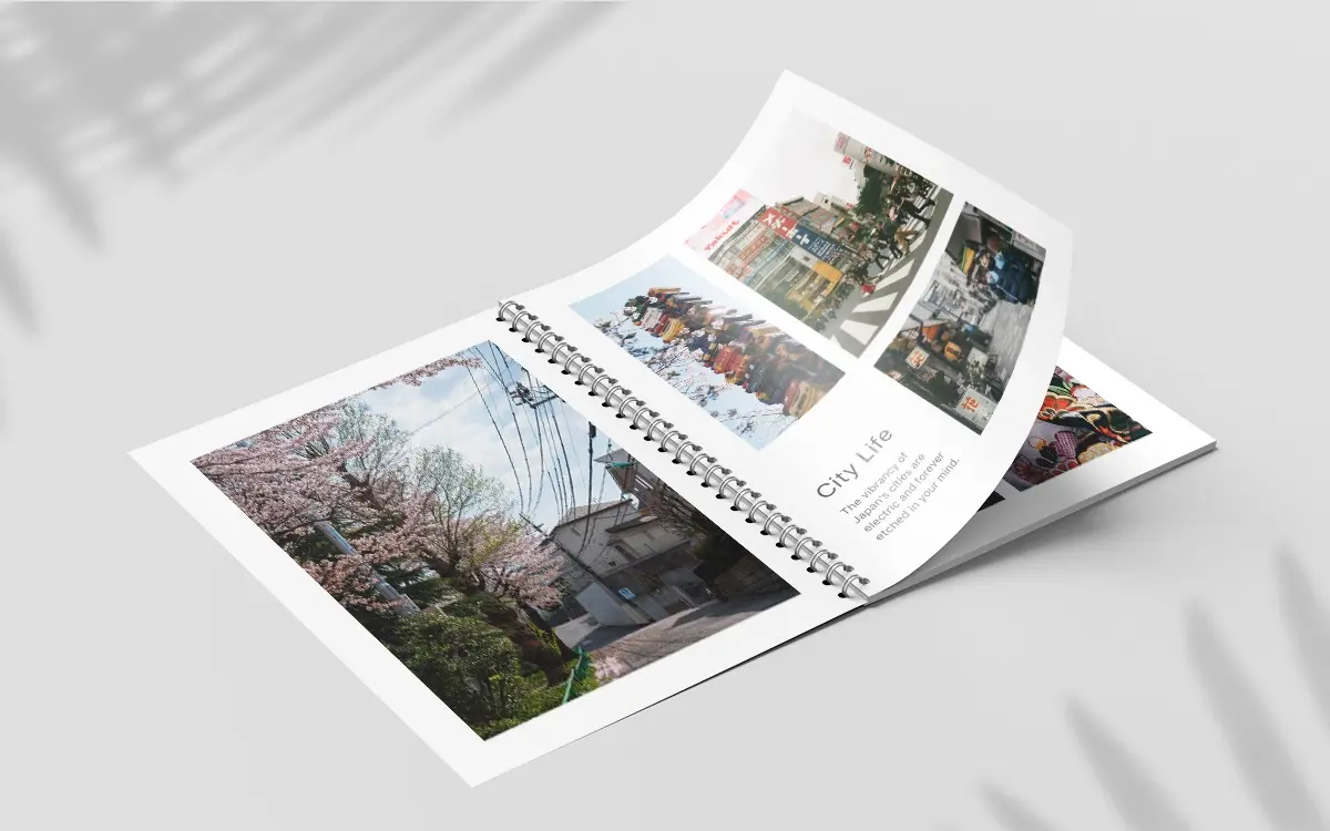 Όρθιο photobook 20-100 σελίδων με βιβλιοδεσία σπιράλ, πλαστικοποιημένο εξώφυλλο 300γρ και χαρτί 200γρ στις εσωτερικές σελίδες.