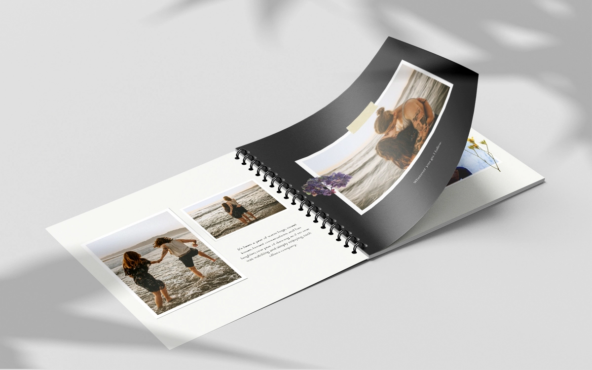 Τετράγωνο photobook με βιβλιοδεσία spiral, 20-100 σελίδες, πλαστικοποιημένο εξώφυλλο 300γρ και χαρτί 200γρ στις εσωτερικές σελίδες.